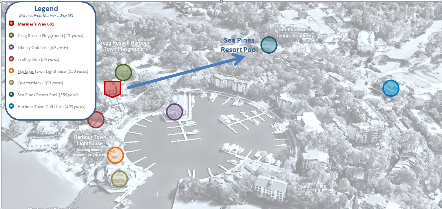 The Property is steps from the Lighthouse, Liberty Oak, Yacht Basin, and Harbour Town Golf Links. Guests enjoy complimentary access to the Harbour Town Pool, with easy trolley connections to Sea Pines beaches, trails, and nature preserves.